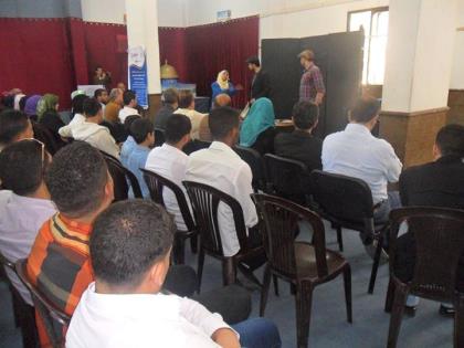 قدمت جمعية بسمة للثقافة والفنون، عرضاً مسرحياً بعنوان "ولد من الاولاد" في كلية مجتمع غزة للدراسات السياحية والتطبيقية بالتنسيق مع دائرة شؤون الطلبة في الكلية. ويأتي عرض المسرحية التي تتناول مشكلة "عمالة الأطفال" في المجتمع ضمن مشروع بعنوان " متطوعون من أجل التغيير" ، بتمويل من الوكالة الأمريكية للتنمية الدولية وبالشراكة مع مؤسسة الإغاثة الكاثوليكية. وقال الأستاذ يحي إدريس مدير المشاريع في جمعية بسمة أن المشروع يتضمن تدريب 40 طالب وطالبة من طلاب الجامعات في موضوعات متعددة من ضمنها المواطنة والعمل التطوعي وحقوق الإنسان والجندر، وبدورهم يقوموا بنقل التدريب لأقرانهم من الطلاب وتدريب 514 من طلاب وخريجي الجامعات في قطاع غزة. وأضاف أنه سيتم تنفيذ ورشات عمل تسلط الضوء حول قضيتين تم تحديدهما وهما عمالة الأطفال ، وضعف المشاركة المجتمعية للنساء في قطاع غزة، حيث سيتم عقد 20 ورشة عمل، بواقع 10 ورشات عمل حول كل قضية ويتم استهلال كل ورشة بعرض مسرحي يسلط الضوء على القضية، كما قام المتطوعون باختيار 15 مبادرة مجتمعية سيتم تنفيذها لخدمة المجتمع. بدوره، أثنى الدكتور ناصر أبو العون القائم بأعمال العميد في الكلية على جهود جمعية بسمة للثقافة والفنون في بإبراز قضية عمالة الأطفال من خلال تقديم العروض المسرحية وورش العمل التي تناقش النتائج السلبية المترتبة على هذه الظاهرة. دائرة العلاقات العامة والإعلام